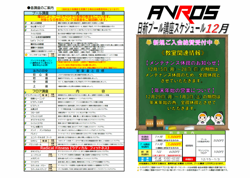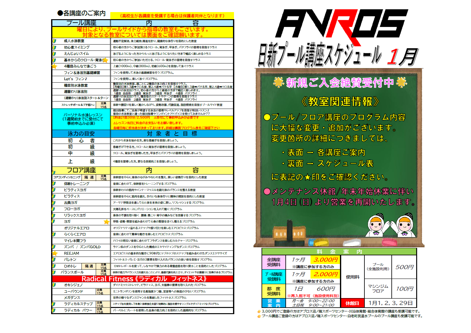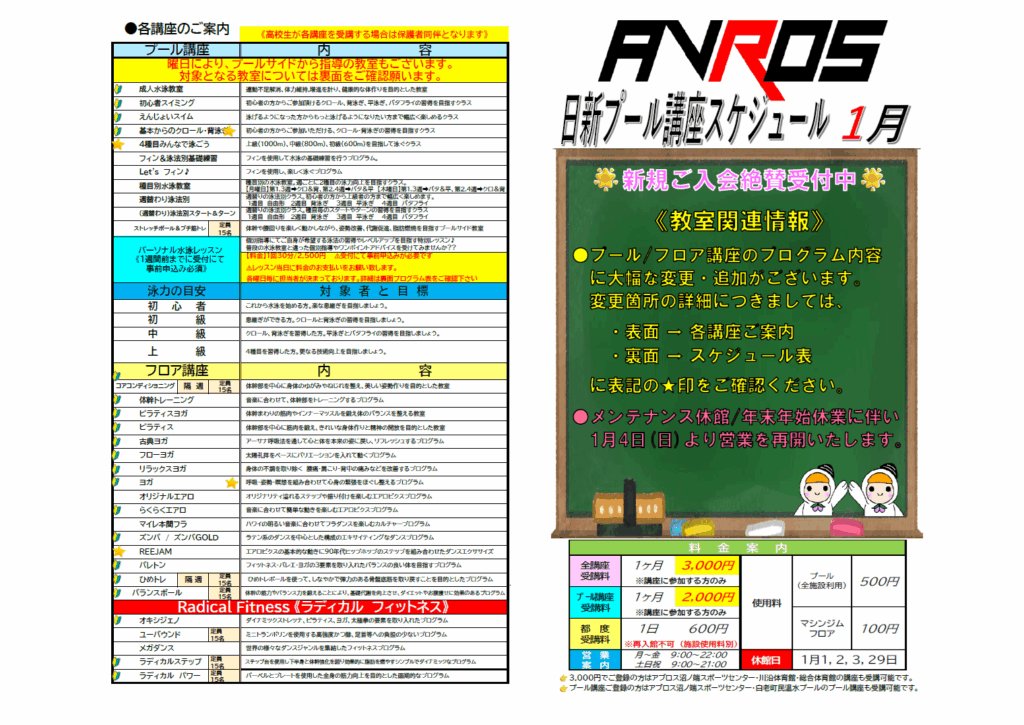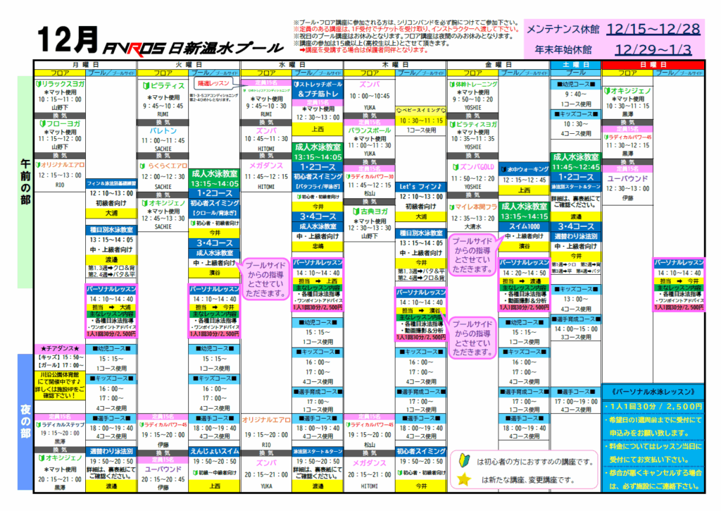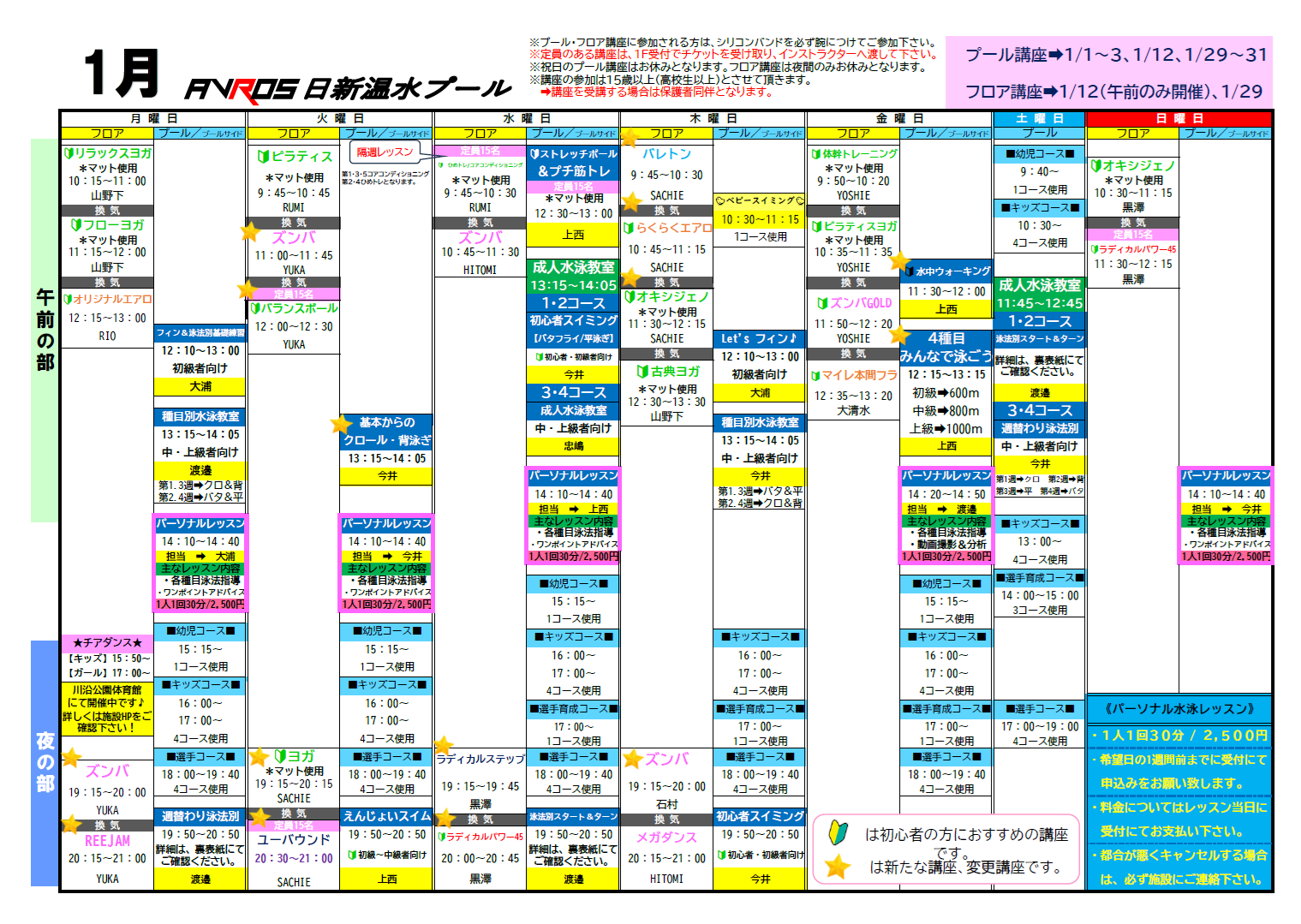 ⚠️2026年1月度のプール講座の一部に担当変更がございます。内容が決まり次第、随時更新させていただきます。
