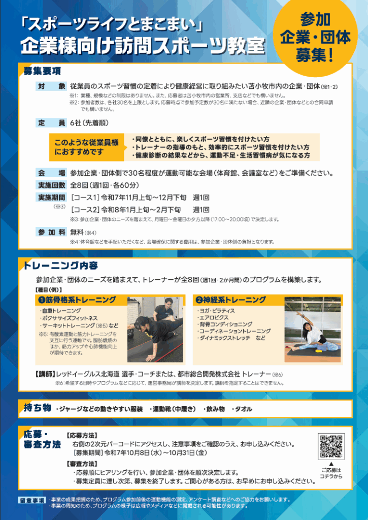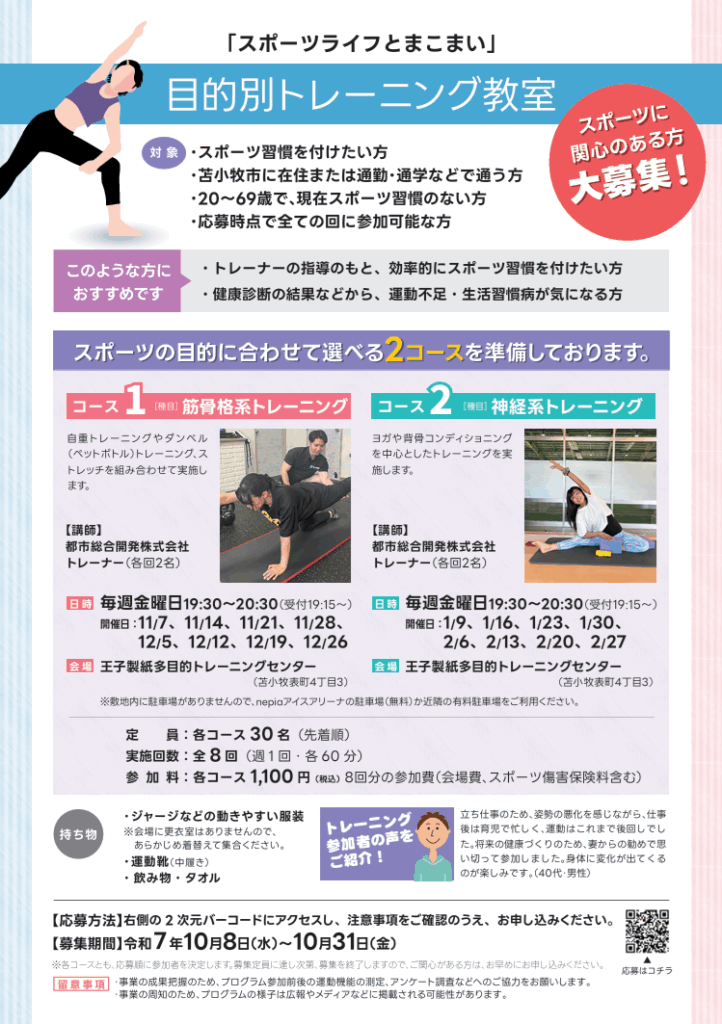 王子製紙多目的トレーニングセンターにて毎週金曜日19:30~20:30、